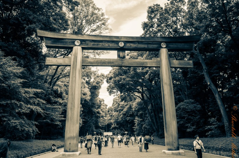 Street graffiti in the Yoyogi garden – We started our first day in Tokyo by walking from Shibuya to the Meiji Shrine. We chose to walk through the Yoyogi park which is a green escape from the busy city, right in the heart of Tokyo. Street graffiti are pretty uncommon in Japan, but when they do appear, they leave you in complete awe.The lush green Yoyogi garden – It was a very relaxing to walk through the park. As you can see, we weren’t the only ones. This patch of green is 70 hectares large, quite impressive given that Tokyo is otherwise packed to the rafters.The Torii (entrance gate) leading to the Meiji Shrine – The shrine was constructed at the turn of the century to commensurate emperor Meiji’s significant contribution to Japan. Read more about Emperor Meiji